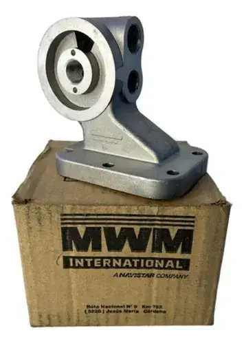 Soporte de filtro de aceite para motores Maxion 2.5 diésel. Repuesto resistente y confiable, ideal para mantener el sistema de lubricación en correcto funcionamiento.