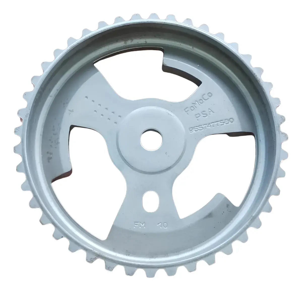 Engranaje de distribución original Ford, diseñado para motores diésel 1.4 y 1.5 de Fiesta y Ecosport. Garantiza un acople preciso con la correa de distribución, asegurando el sincronismo correcto entre cigüeñal y árbol de levas para un funcionamiento óptimo del motor.